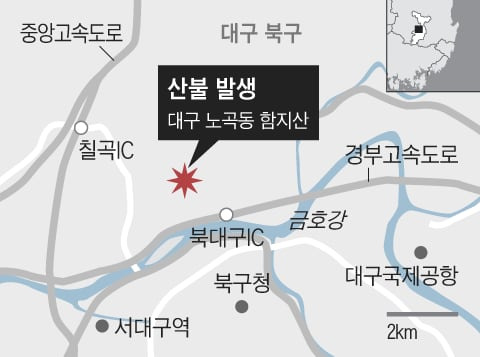 2025년 4월 28일 오후, 대구 북구 노곡동 함지산 일대에서 산불이 발생했습니다.