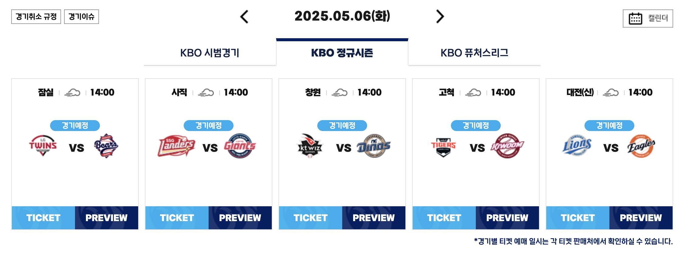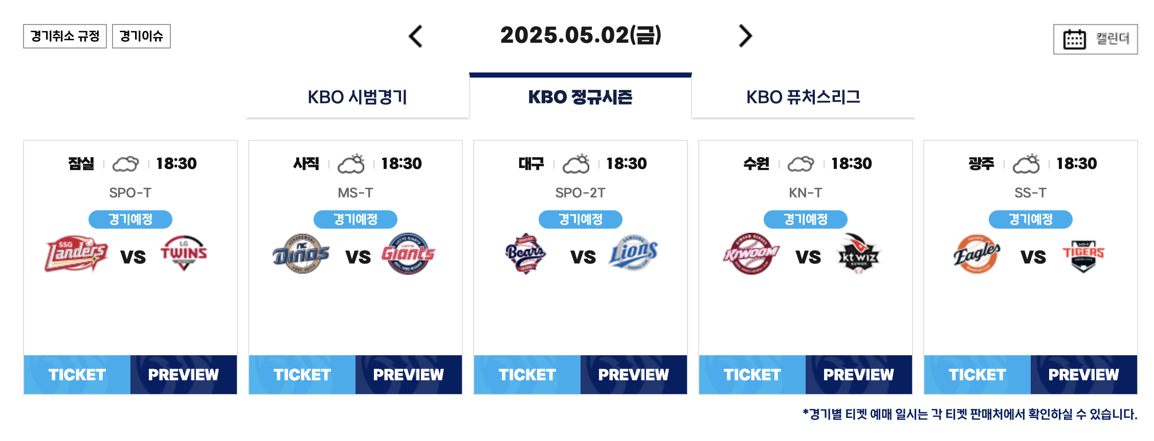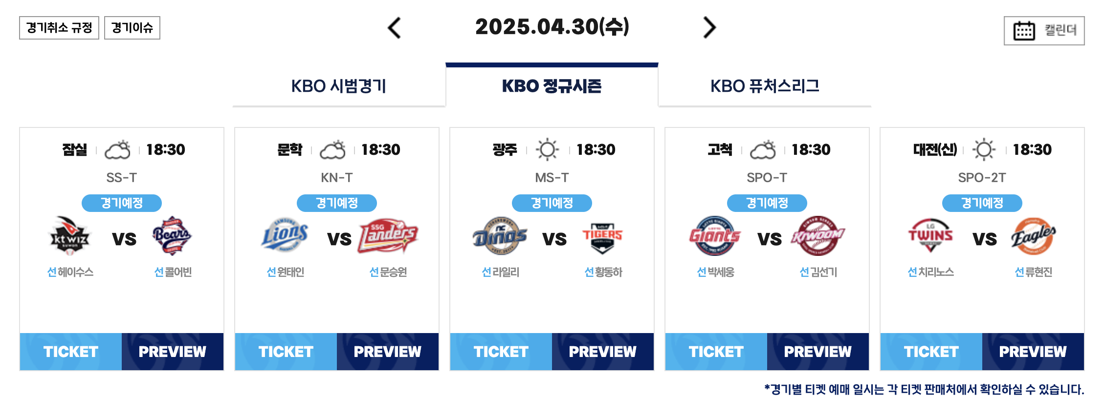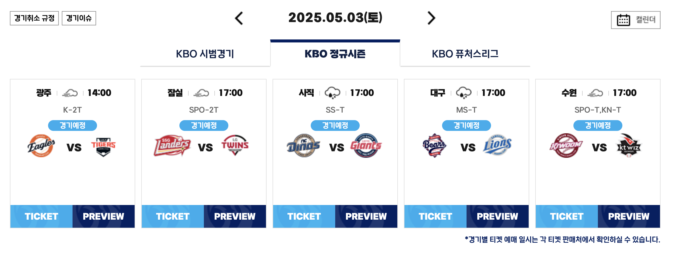 🔻 KBO 야구 9연전 경기 일정 🔻