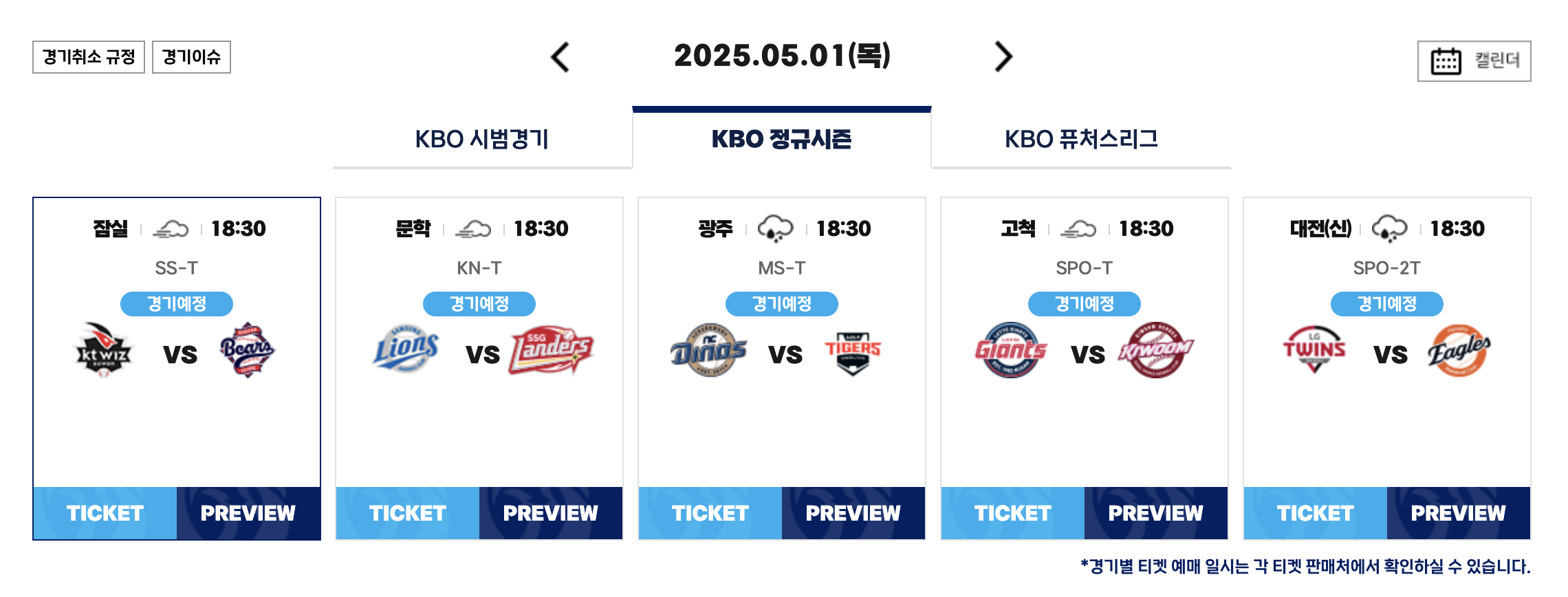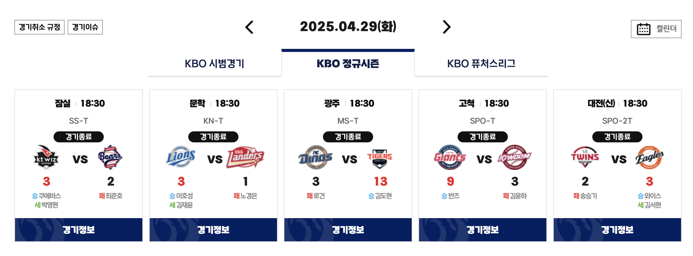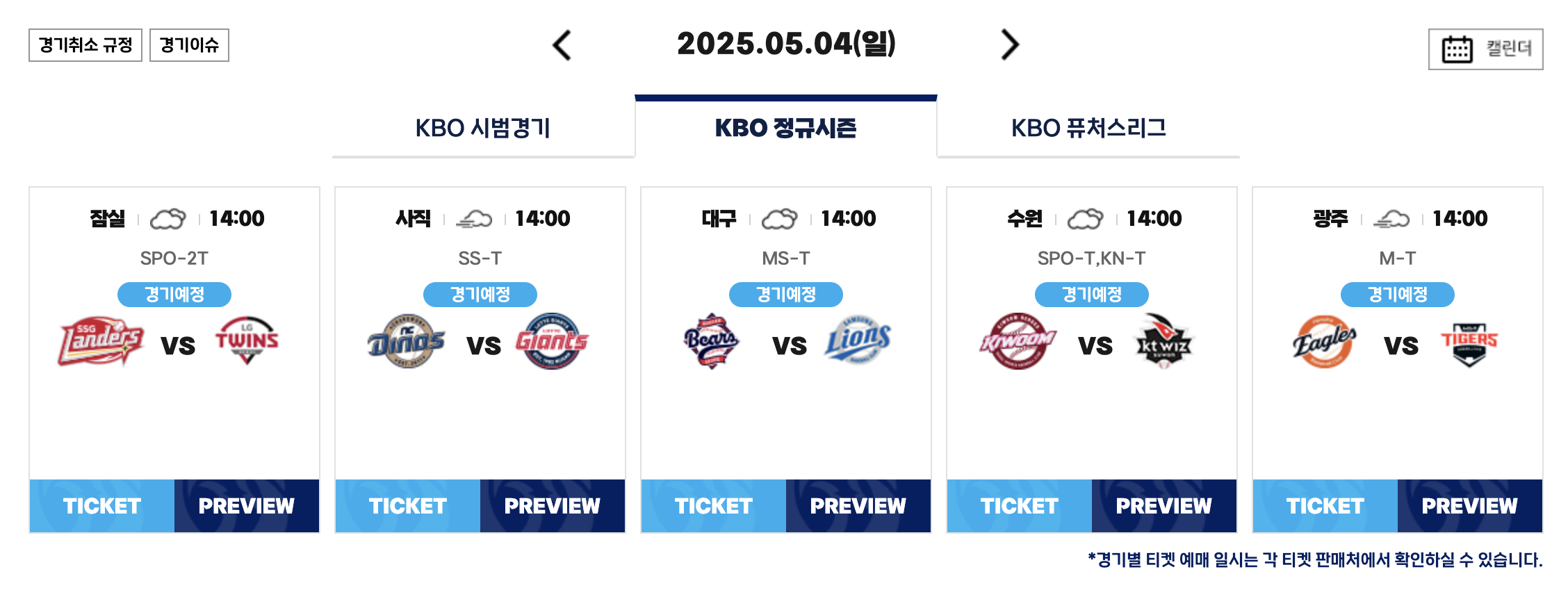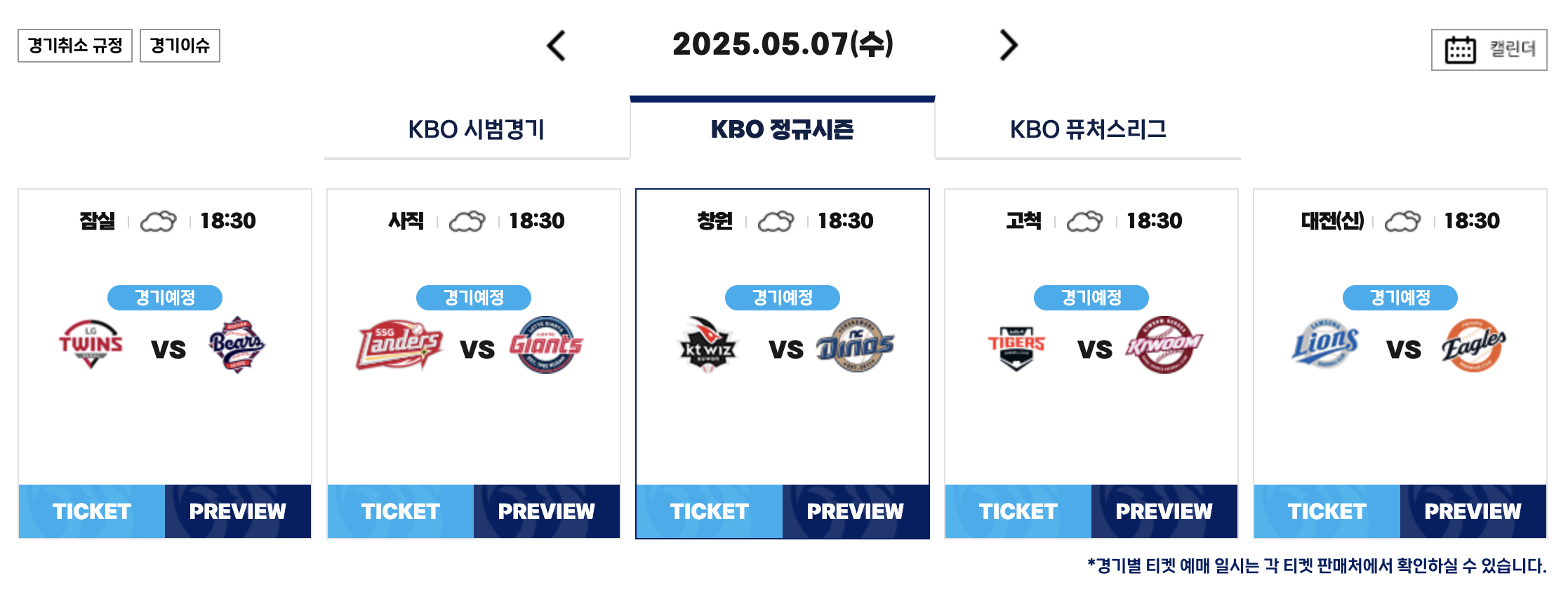 🔻 KBO 야구 9연전 경기 일정 🔻