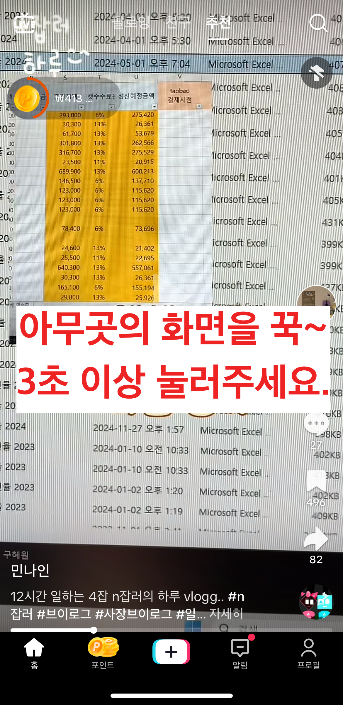 이후 숏폼이 자동으로 재생되며 1개의 영상을 볼 때마다 포인트가 적립됩니다.